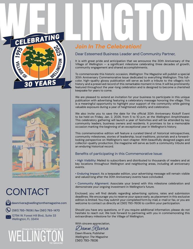 Include your business in the official Village of Wellington keepsake magazine with your celebratory message honoring the 30th Anniversary!